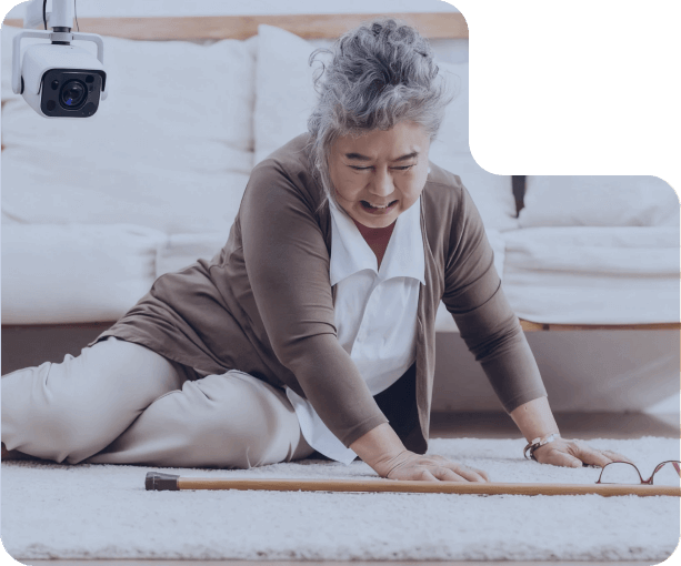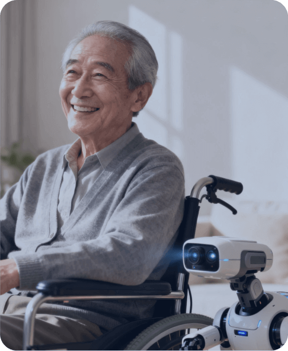 AI视觉全时分析长者状态与环境风险,洞察潜在需求与异常,机器人第一时间介入处置,提供及时的救助